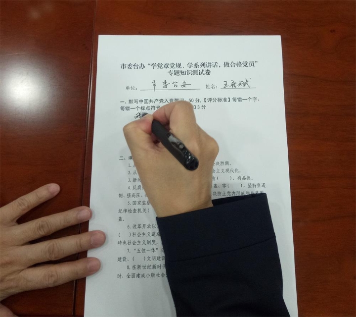 为推动党员干部深入学习党章党规、学习习近平总书记系列重要讲话精神,达到以考促学、以学促用的效果,11月16日上午,常德市委台办组织开展“两学一做”学习教育知识测试,要求全体干部职工参加。